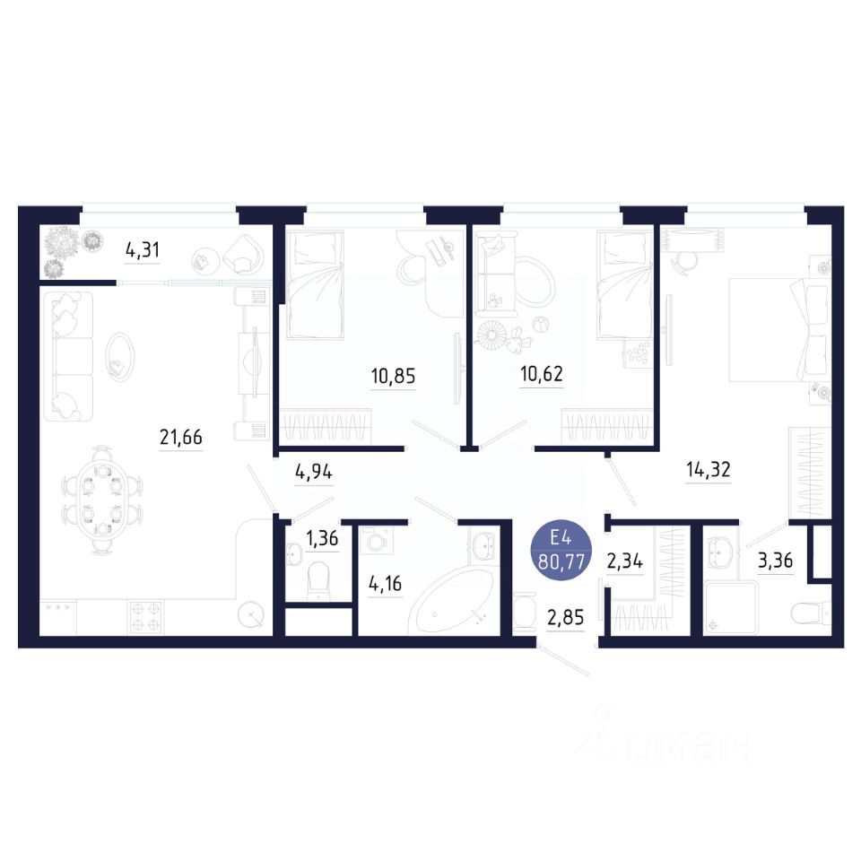 Общая площадь80,77 м2