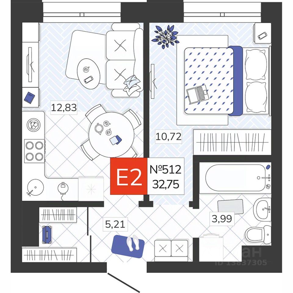 Общая площадь32,75 м2