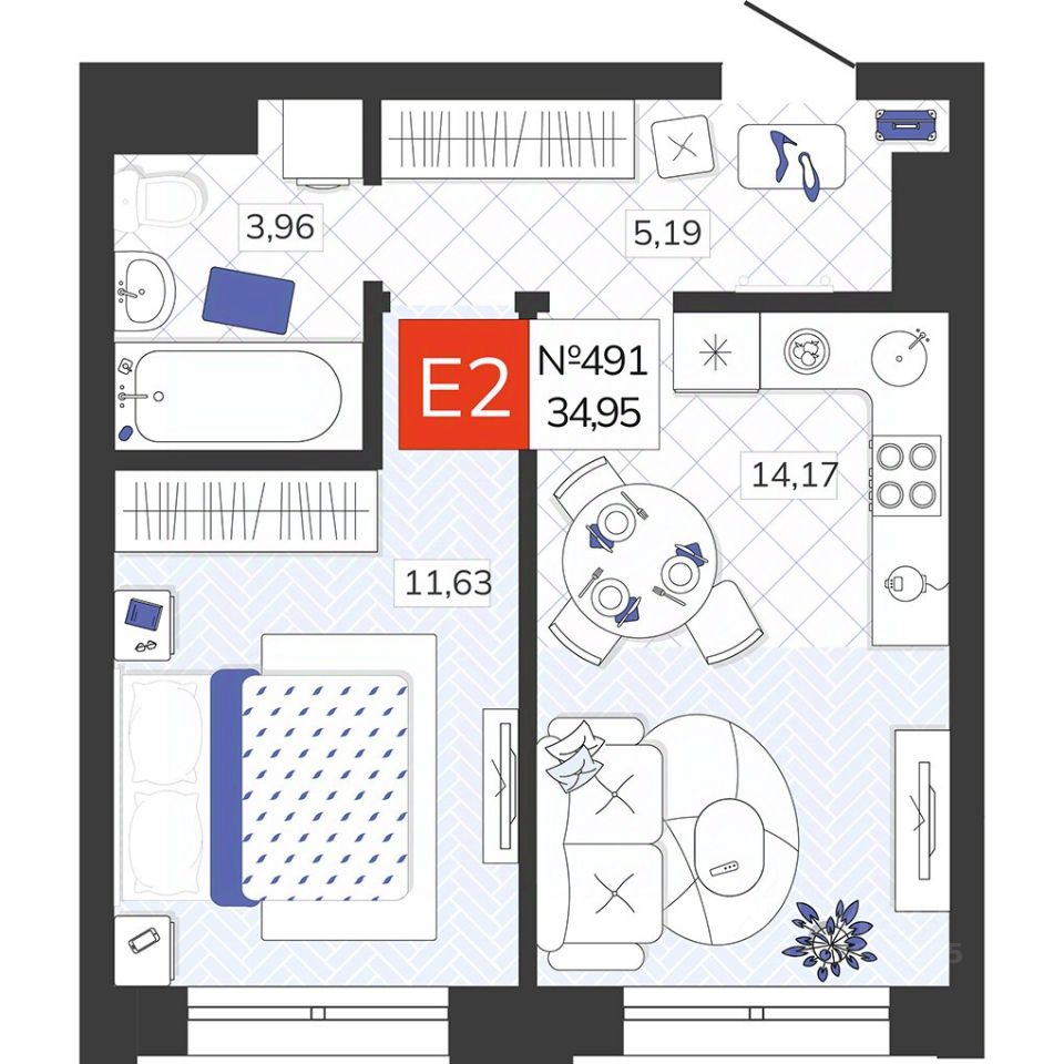 Общая площадь34,95 м2