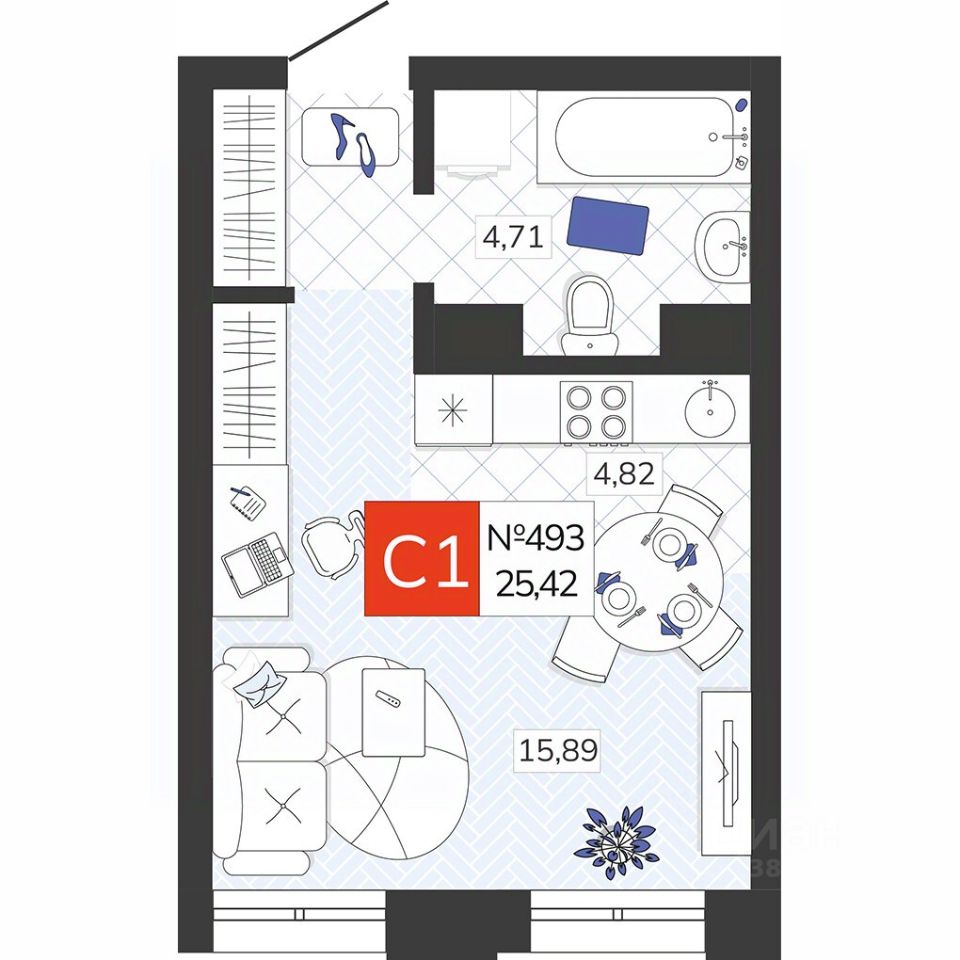 Общая площадь25,42 м2
