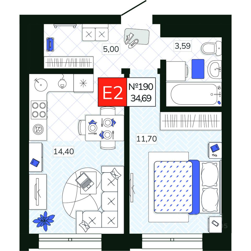 Общая площадь34,69 м2