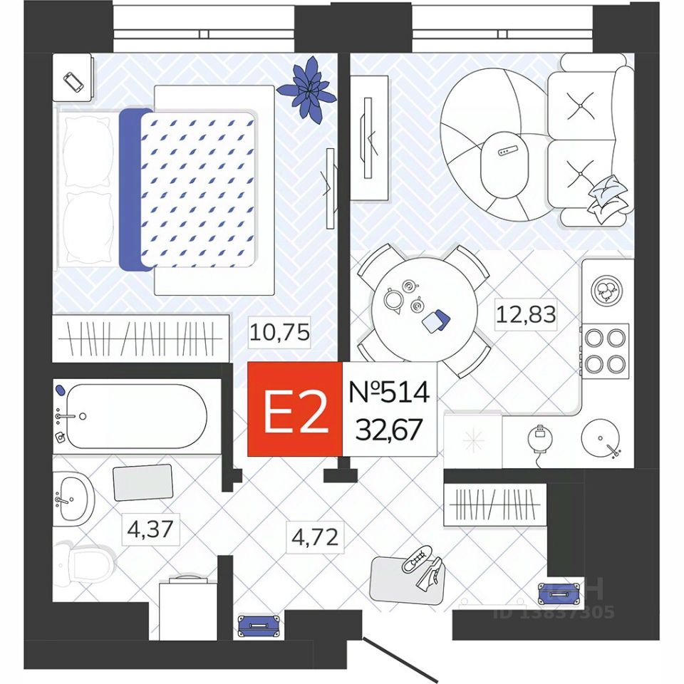 Общая площадь32,67 м2