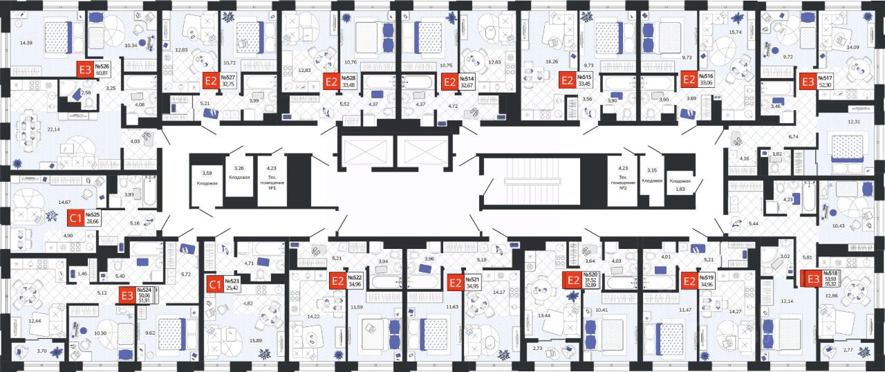 - Системы водоснабжения и отопления разведены горизонтально в конструкции пола