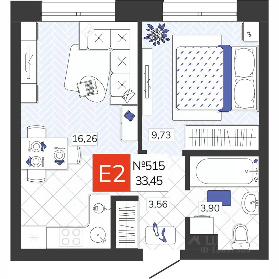 Общая площадь33,45 м2