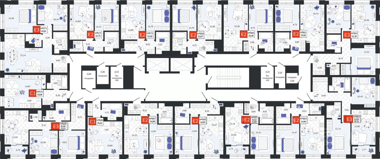 - Системы водоснабжения и отопления разведены горизонтально в конструкции пола