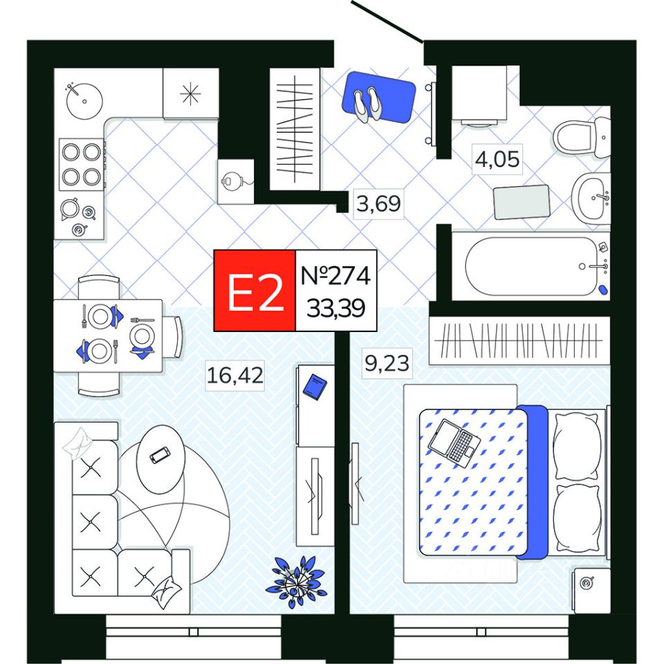 Общая площадь33,39 м2