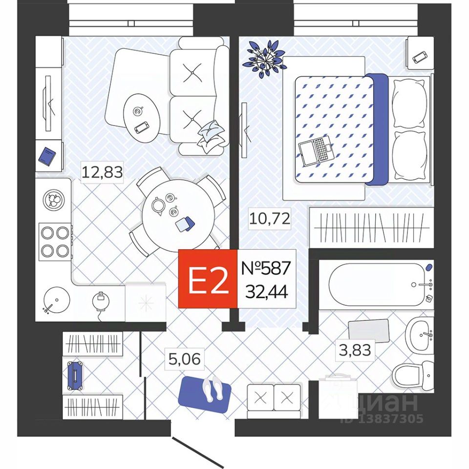 Общая площадь32,44 м2