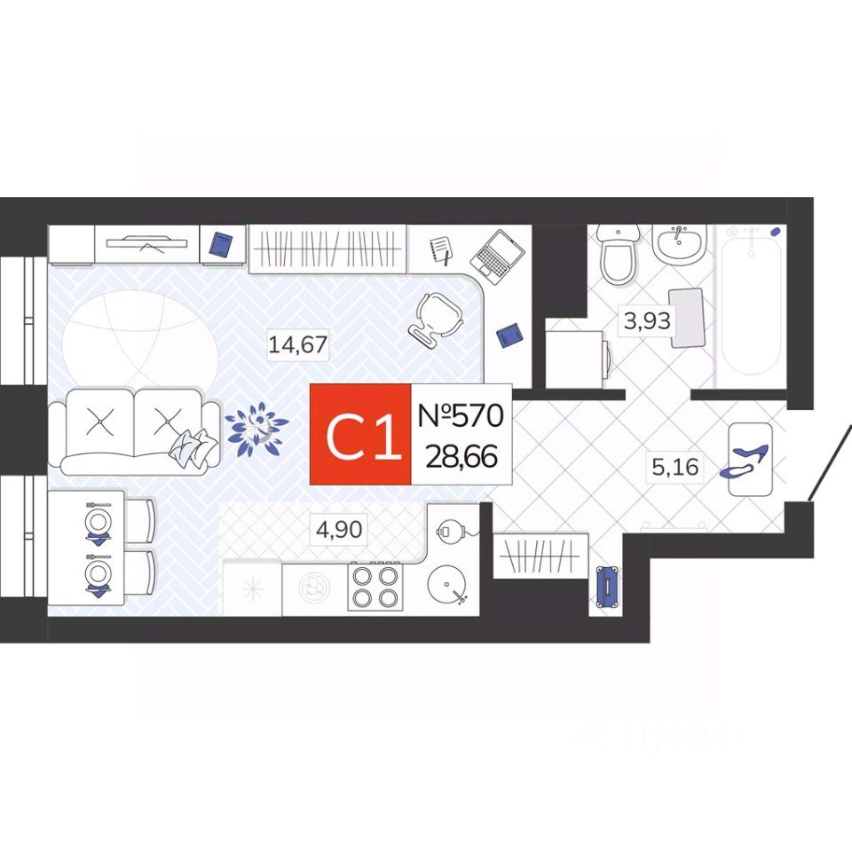 Общая площадь28,66 м2