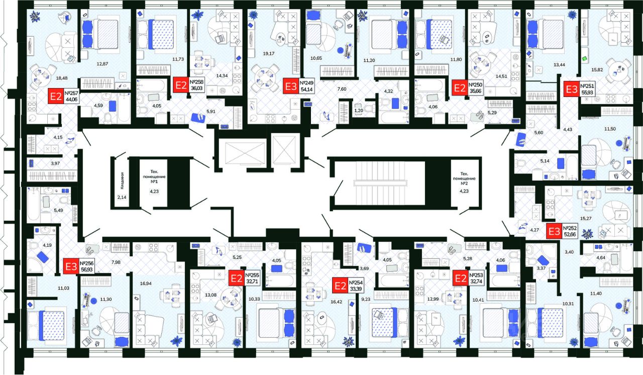 - Системы водоснабжения и отопления разведены горизонтально в конструкции пола