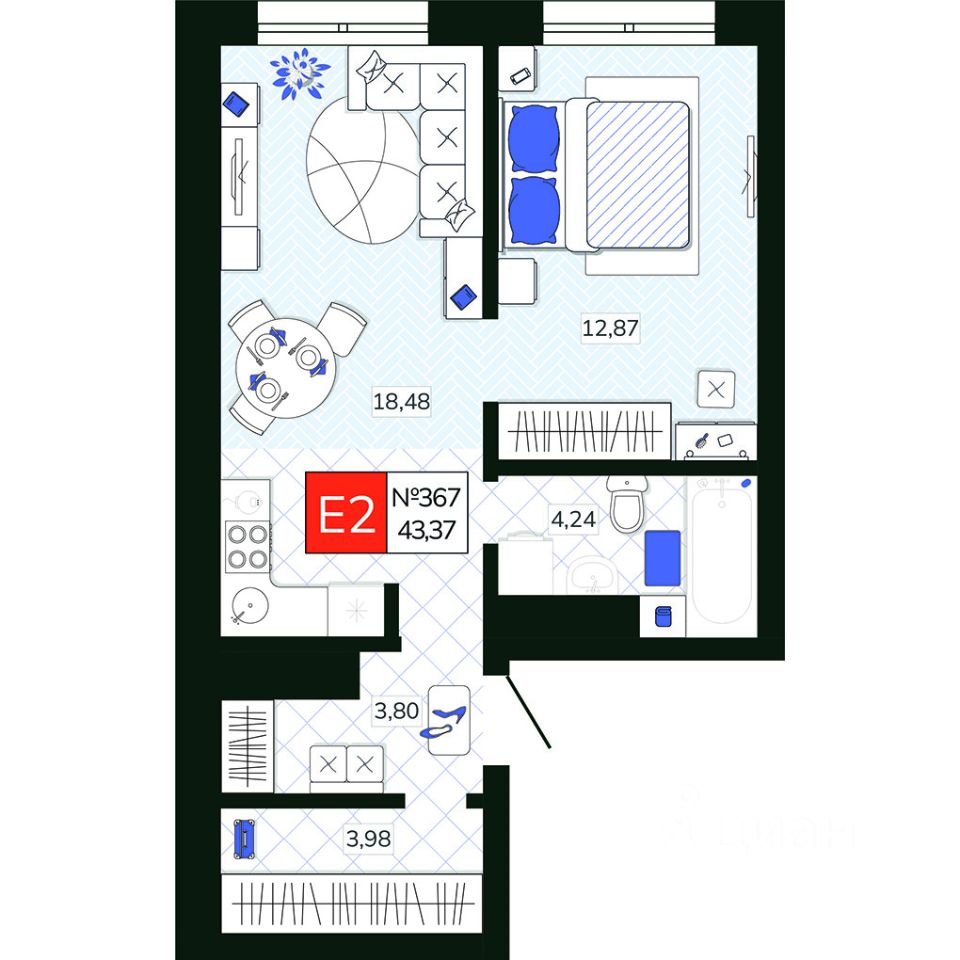 Общая площадь43,37 м2