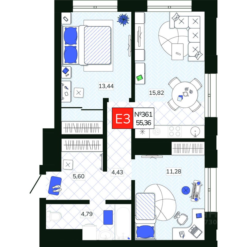 Общая площадь55,36 м2