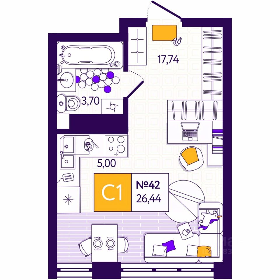 Общая площадь26,44 м2