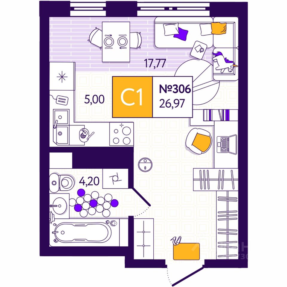 Общая площадь26,97 м2