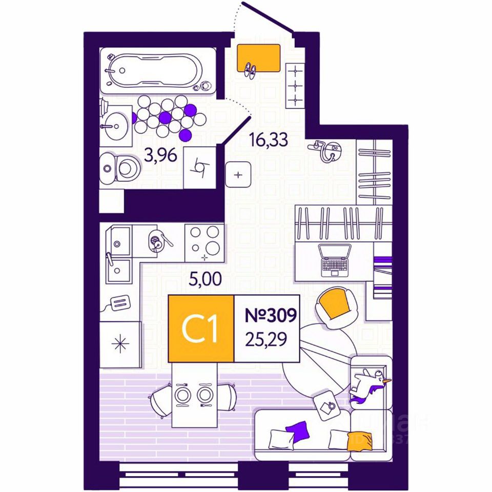 Общая площадь25,29 м2