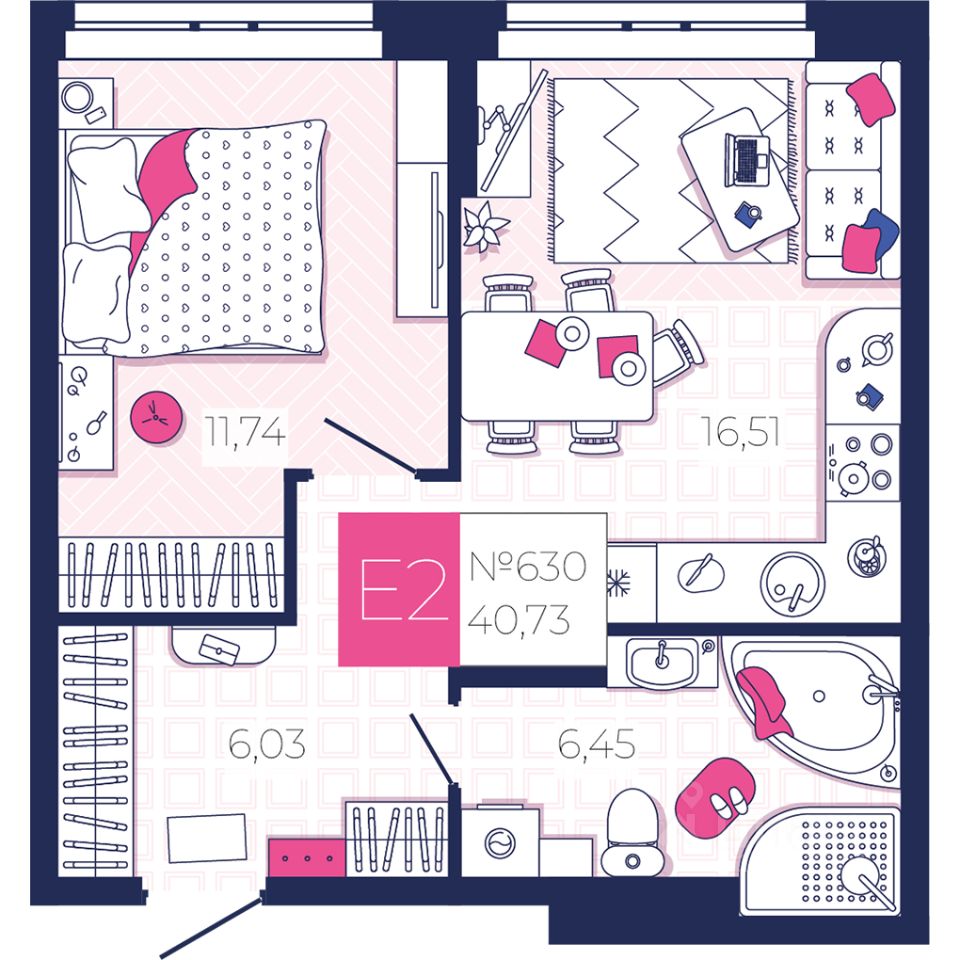 Общая площадь40,73 м2