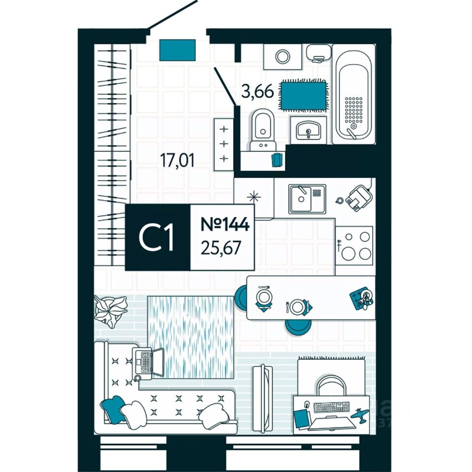 Общая площадь25,67 м2