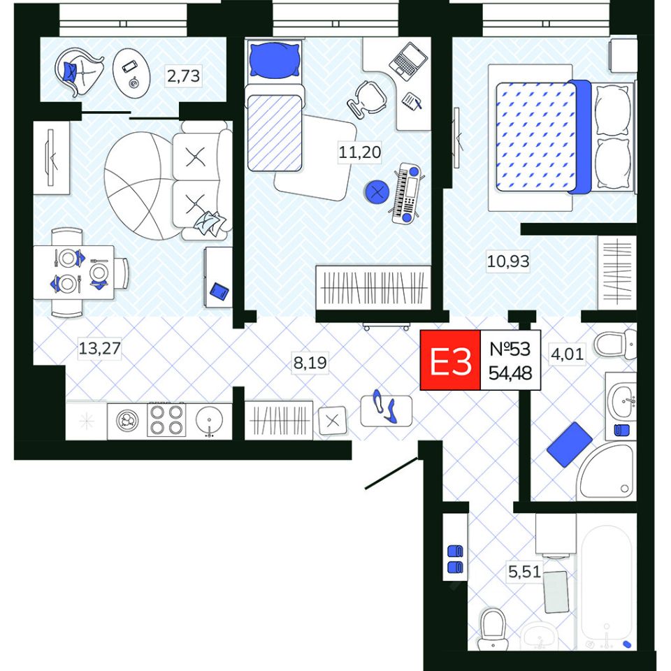 Общая площадь54,48 м2