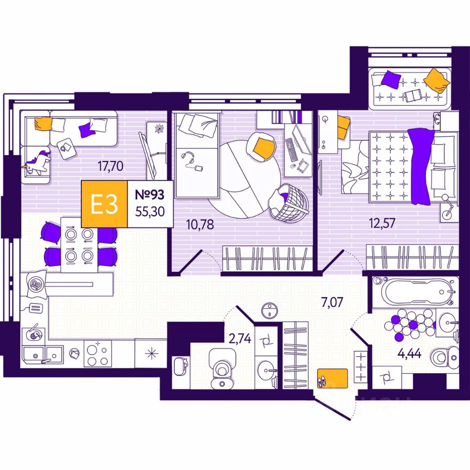 Общая площадь55,3 м2