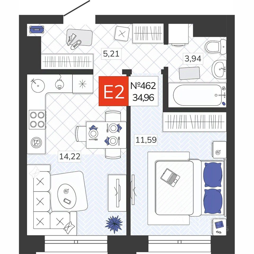 Общая площадь34,96 м2