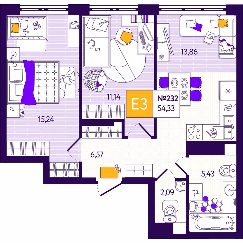 Общая площадь54,33 м2