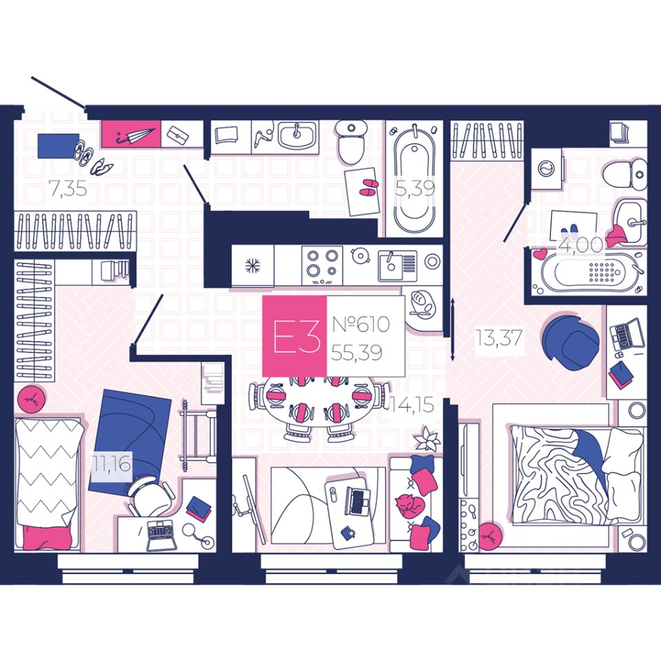 Общая площадь55,39 м2
