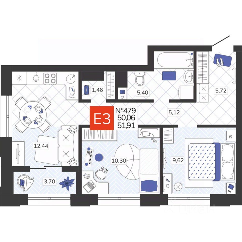 Общая площадь51,91 м2