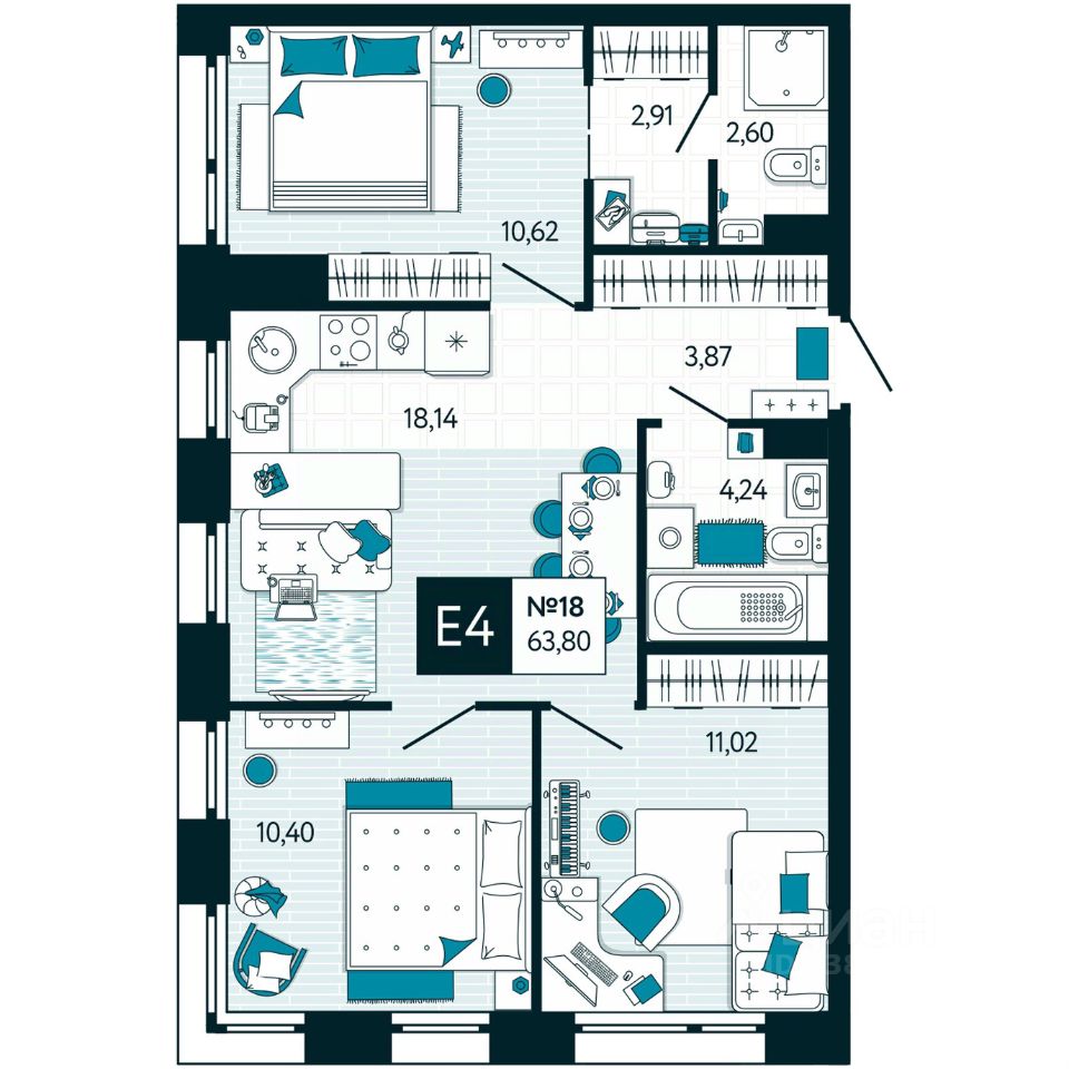 Общая площадь63,8 м2