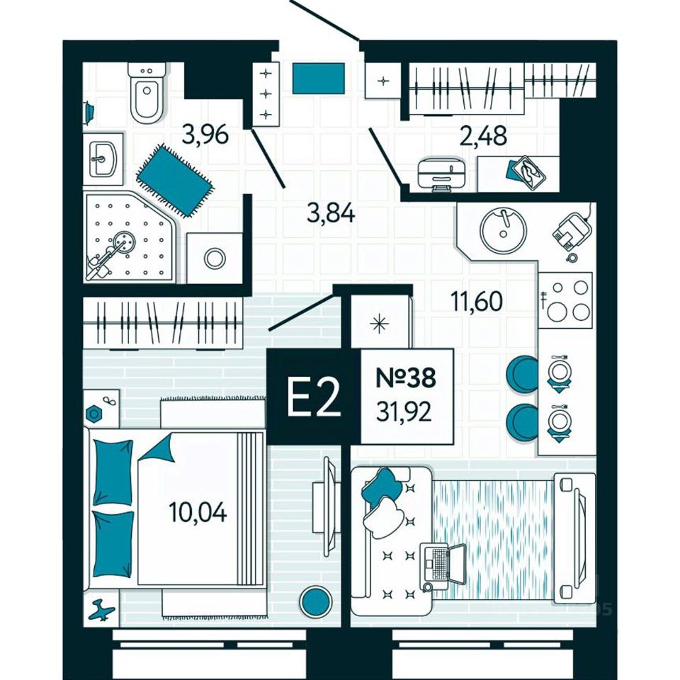 Общая площадь31,92 м2