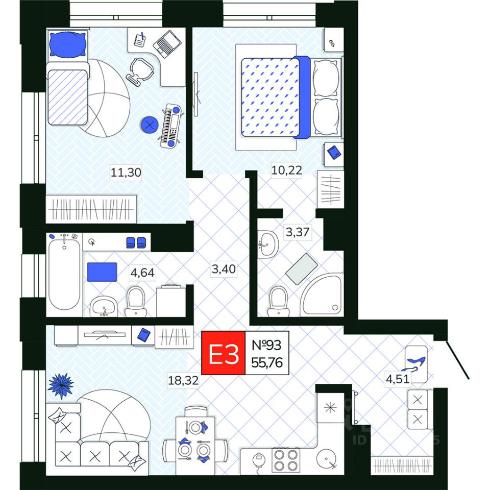 Общая площадь55,76 м2
