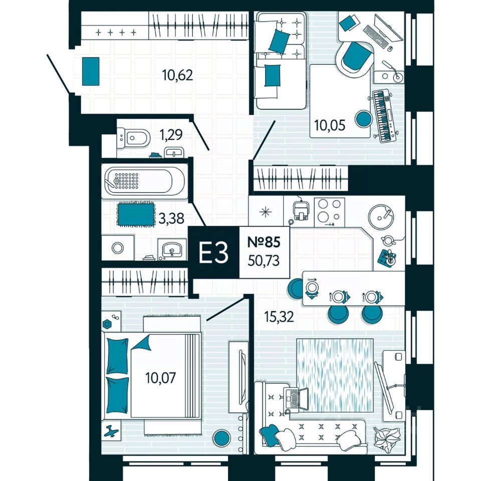 Общая площадь50,73 м2