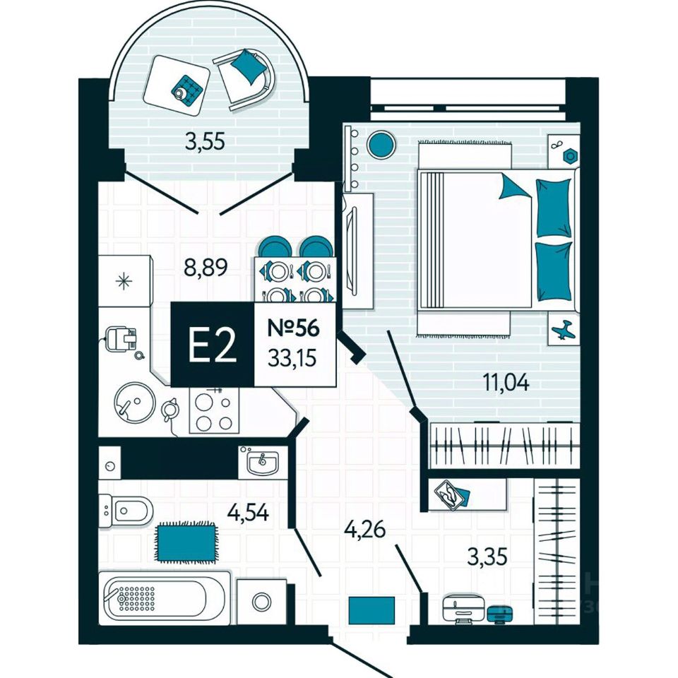 Общая площадь33,15 м2