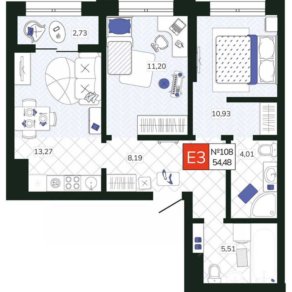 Общая площадь54,48 м2
