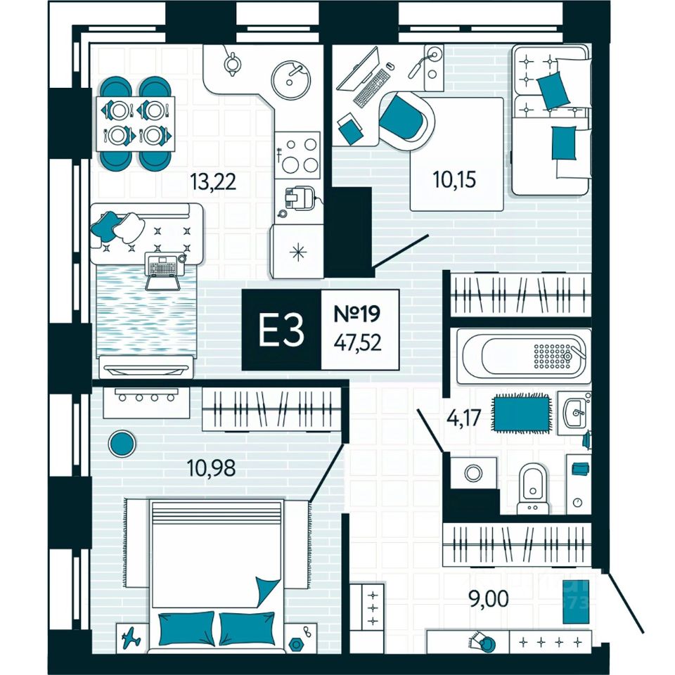 Общая площадь47,52 м2