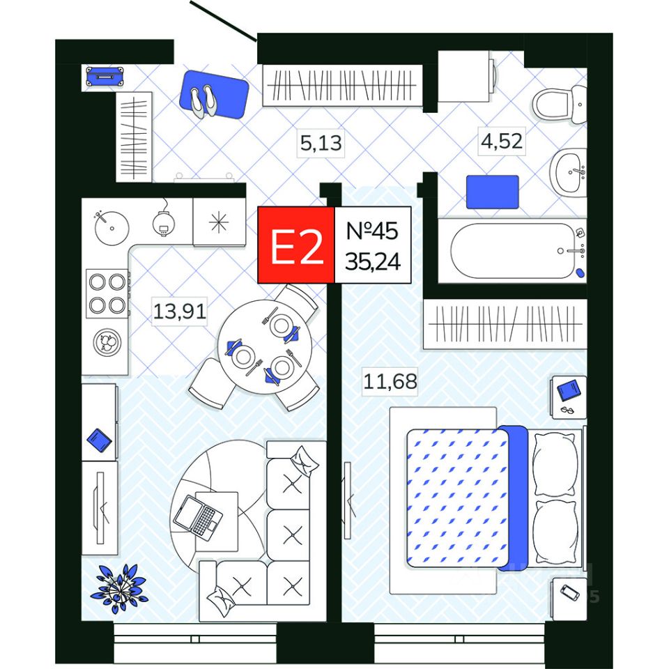 Общая площадь35,24 м2