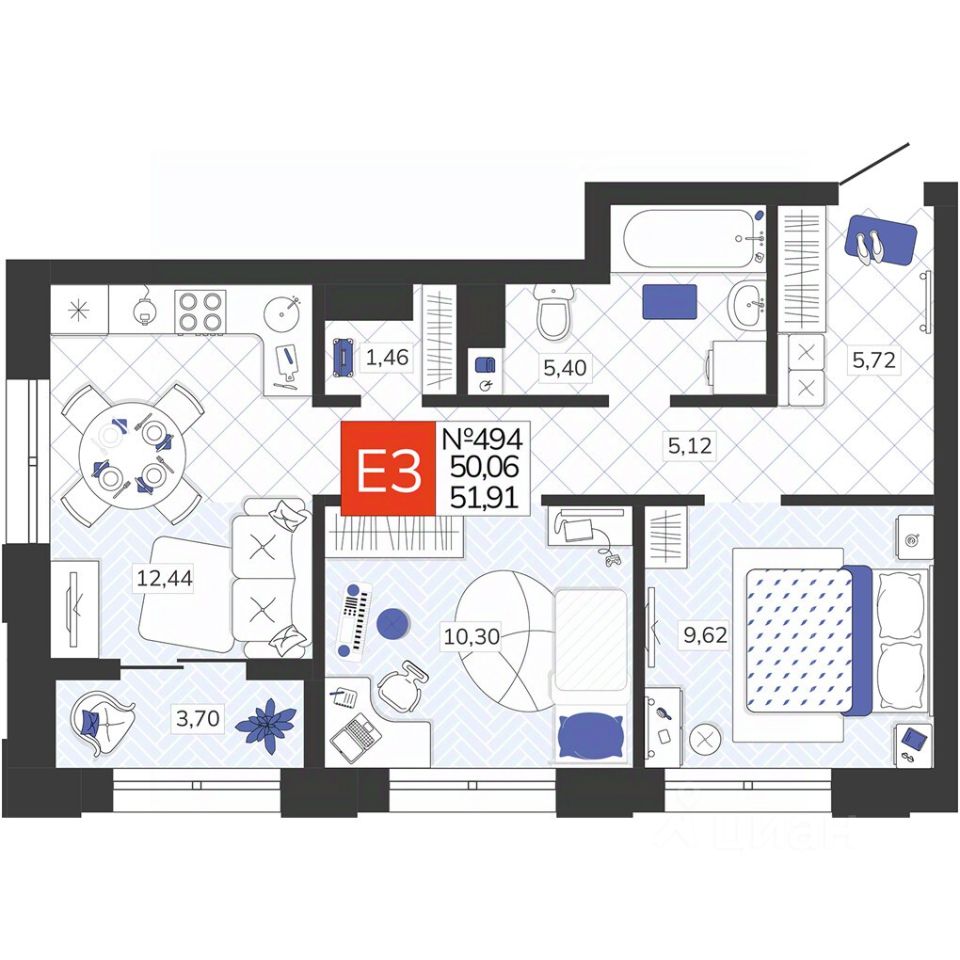 Общая площадь51,91 м2