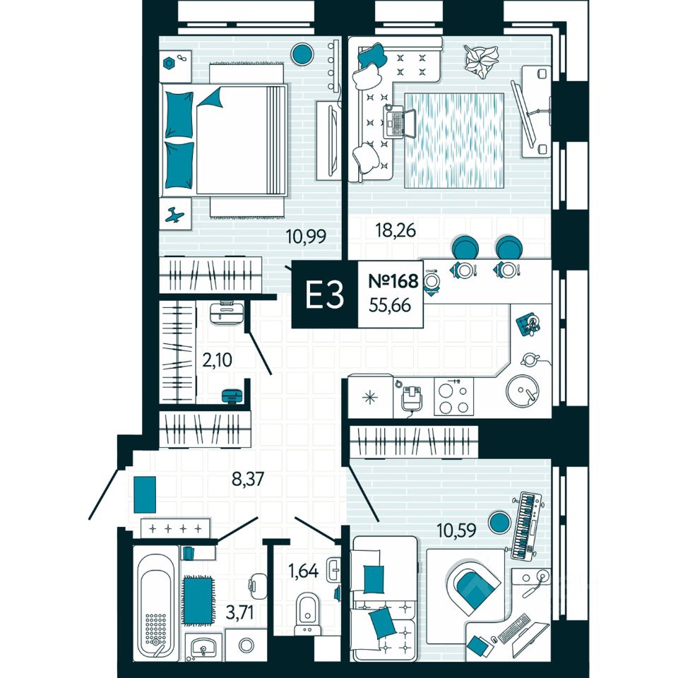 Общая площадь55,66 м2