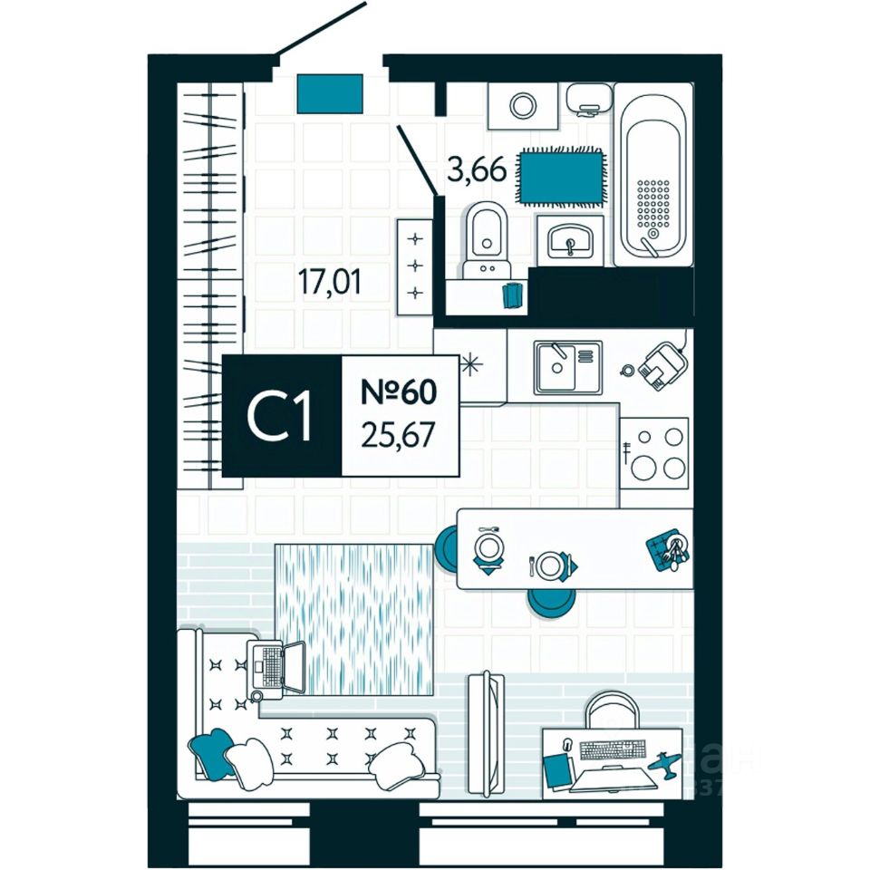 Общая площадь25,67 м2