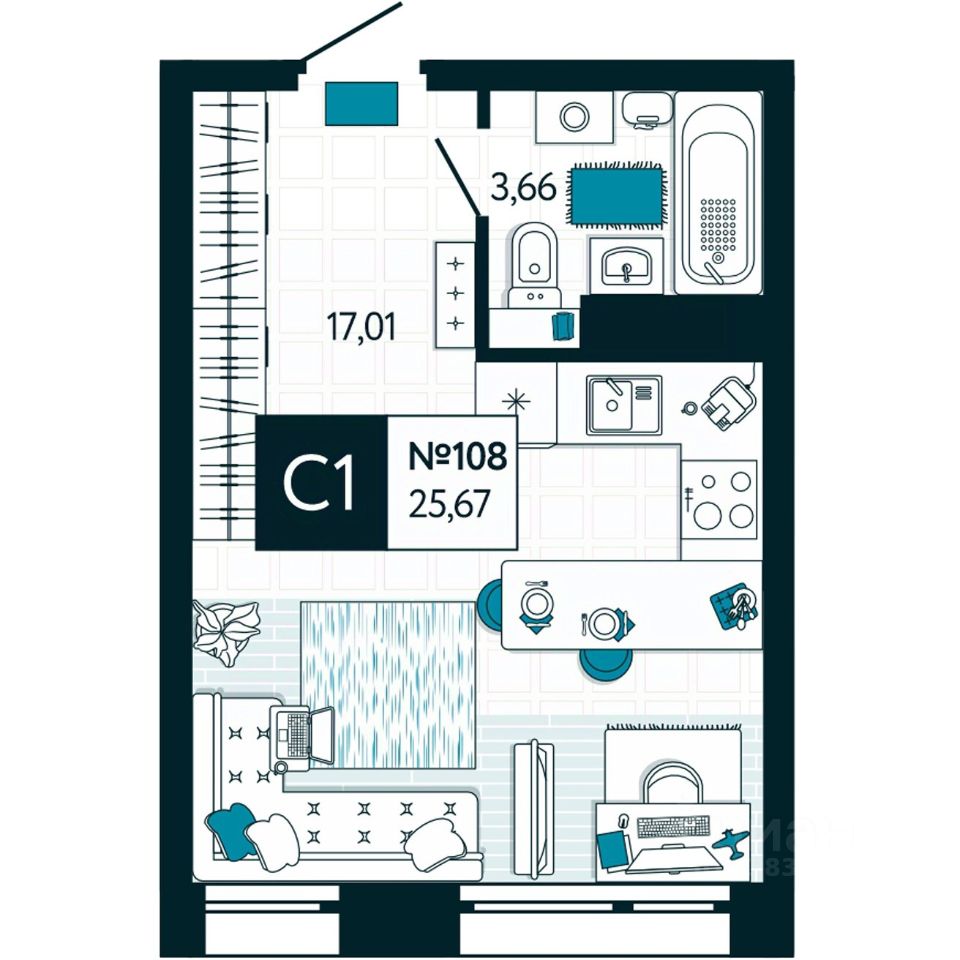 Общая площадь25,67 м2