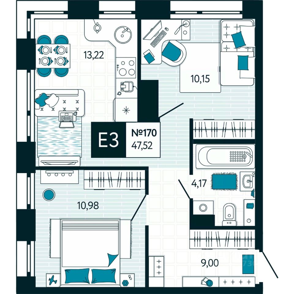 Общая площадь47,52 м2