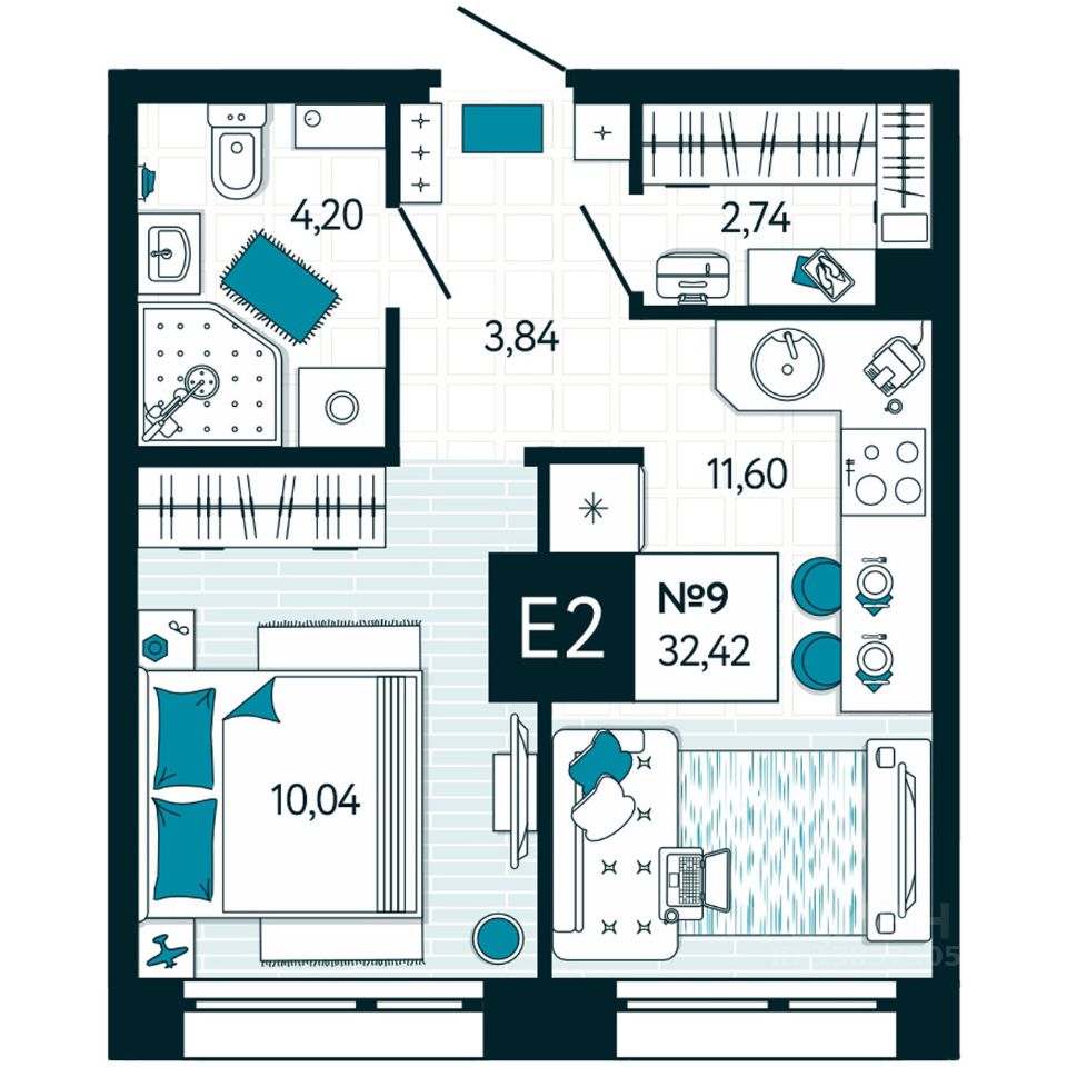 Общая площадь32,42 м2
