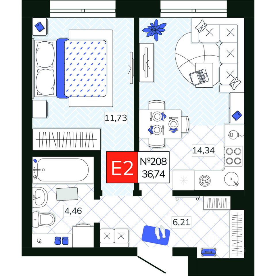 Общая площадь36,74 м2