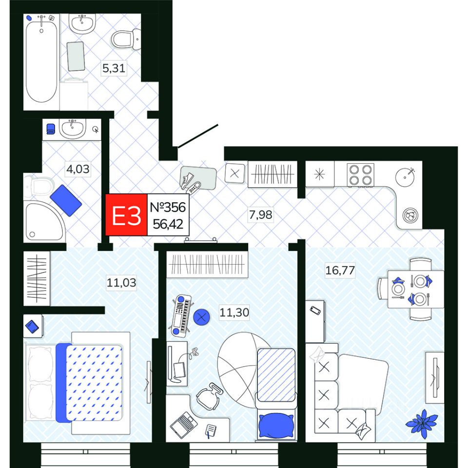 Общая площадь56,42 м2