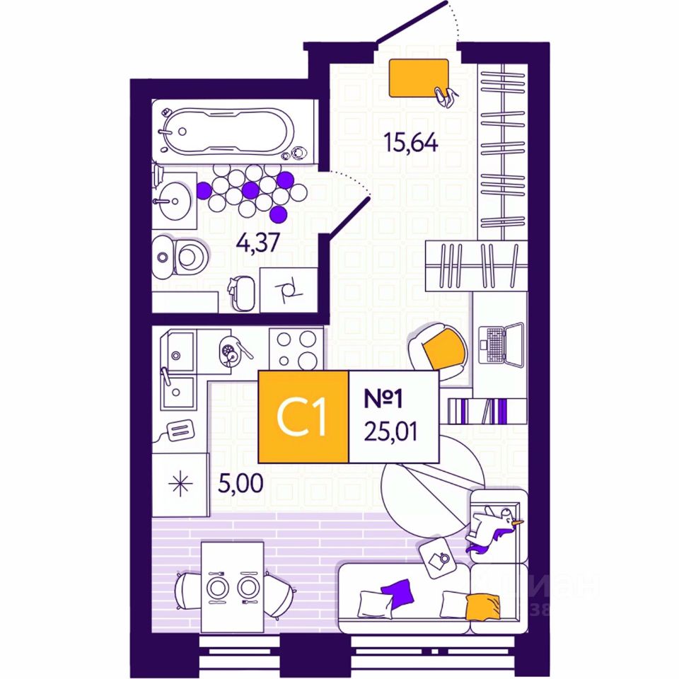 Общая площадь25,01 м2