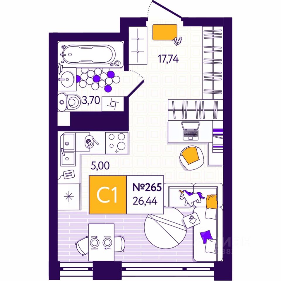 Общая площадь26,44 м2