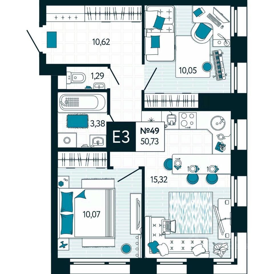 Общая площадь50,73 м2