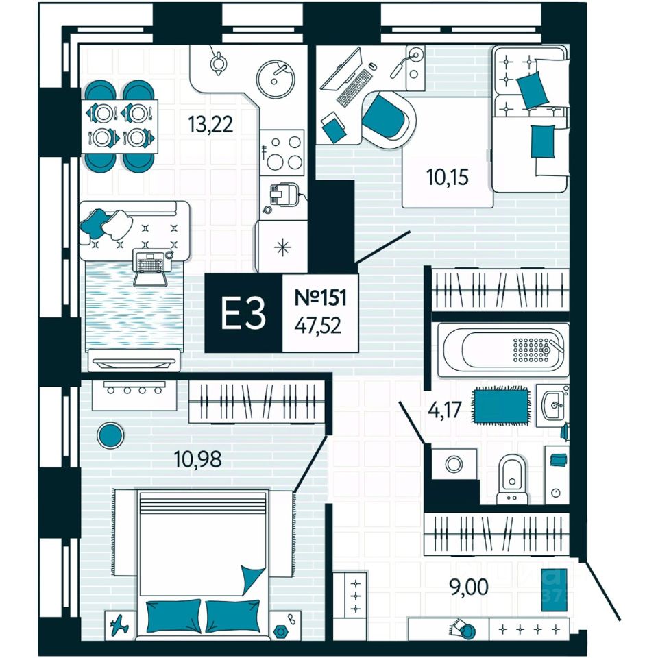 Общая площадь47,52 м2