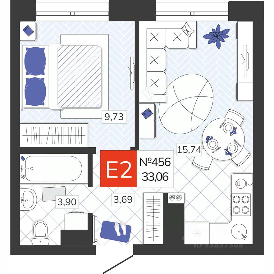 Общая площадь33,06 м2