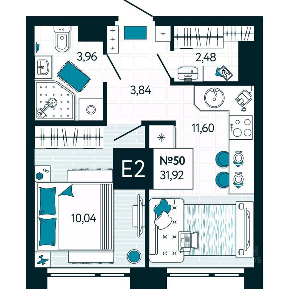 Общая площадь31,92 м2