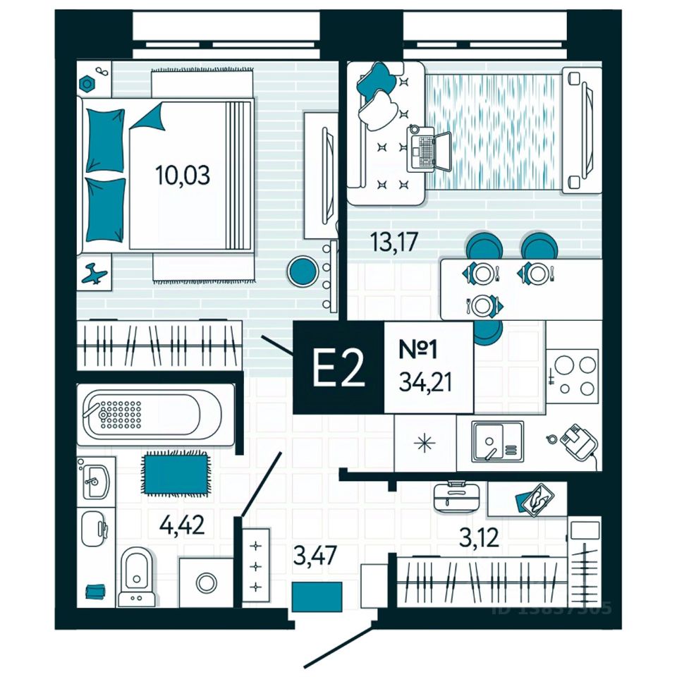 Общая площадь34,21 м2
