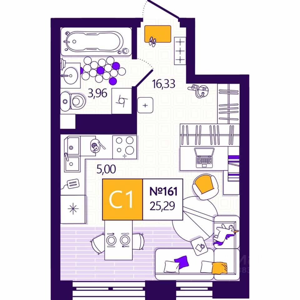 Общая площадь25,29 м2
